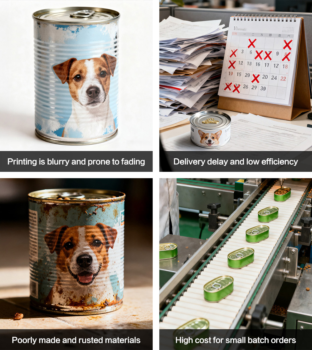 As a leading pet food tin can manufacturer, we support your brand at every stage with a diverse range of styles. From small-batch custom pet food tins for market testing to large-quantity pet food tin containers for mass production, we provide the perfect packaging solution.